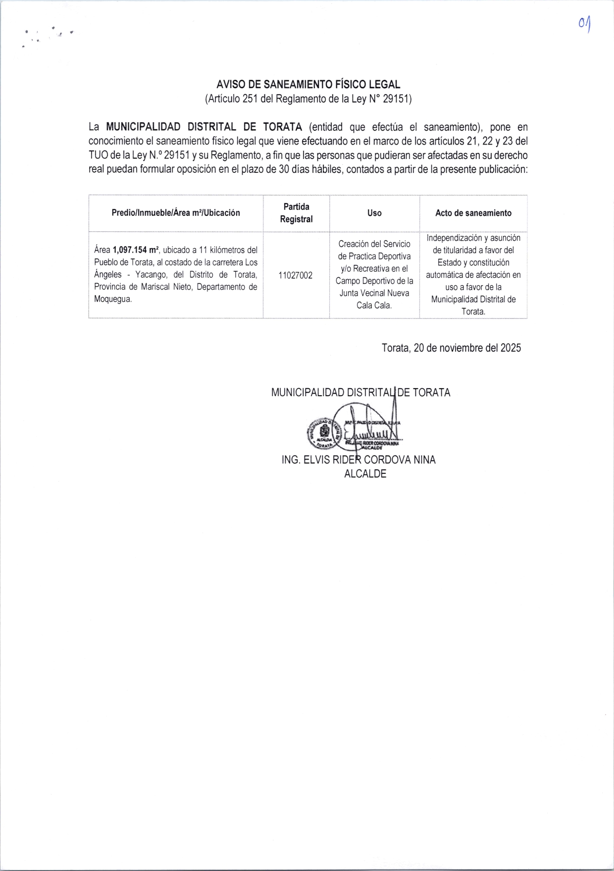 AVISO DE SANEAMIENTO FISICO LEGAL