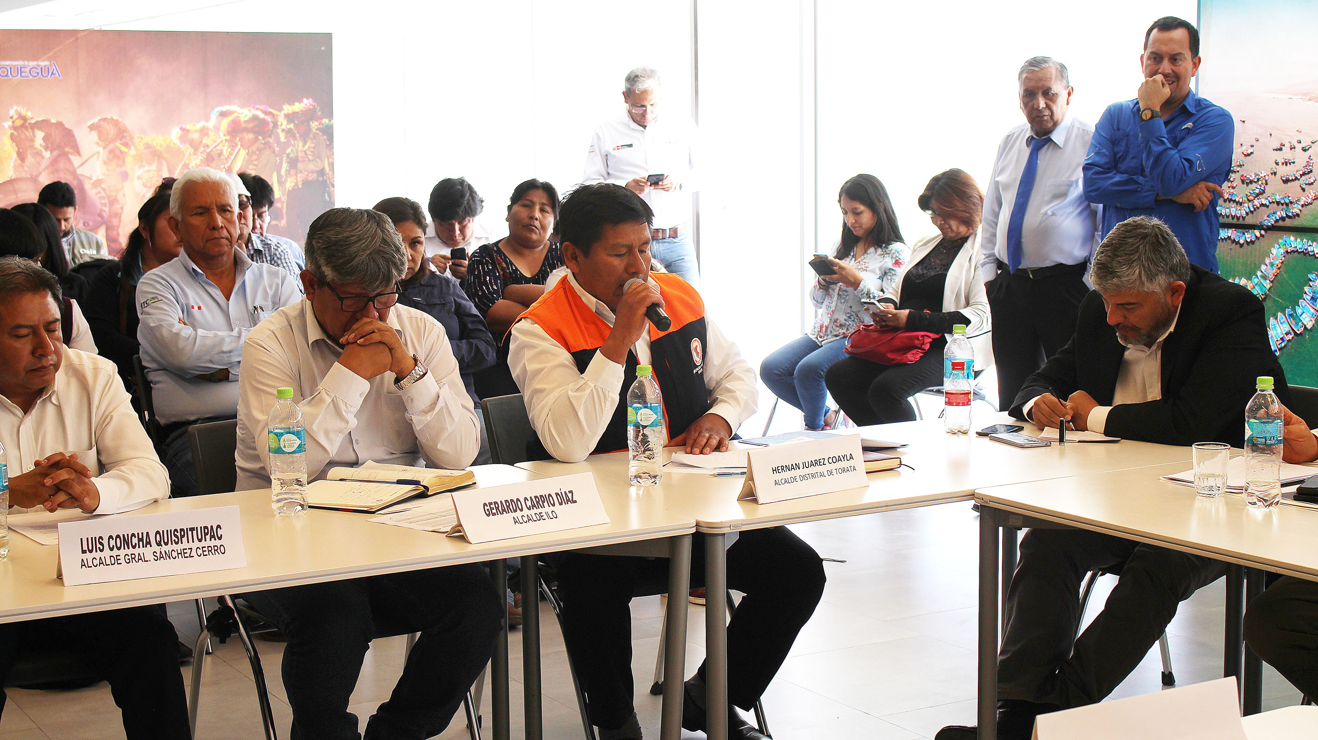 En la parte final de su alocución, el Alcalde Distrital refirió la falta de recurso hídrico en toda la Región, y propuso establecer una alianza estratégica entre los Gobiernos Locales y Regional, así como la empresa privada para la construcción de la Represa Huacuyo, la cual abastecería a futuro la gran demanda hídrica para la agricultura en la Región Moquegua.