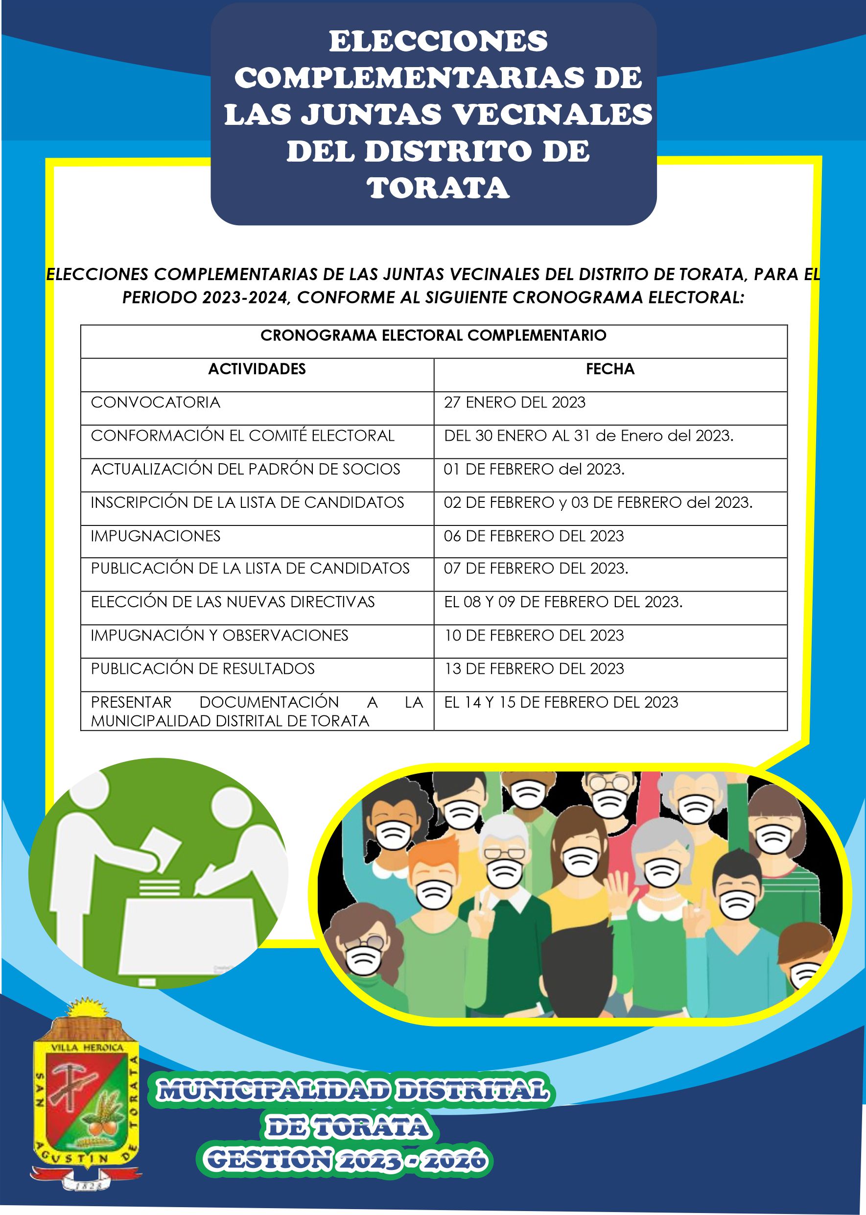 ELECIONES COMPLEMENTARIAS DE LAS JUNTAS VECINALES DEL DISTRITO DE TORATA