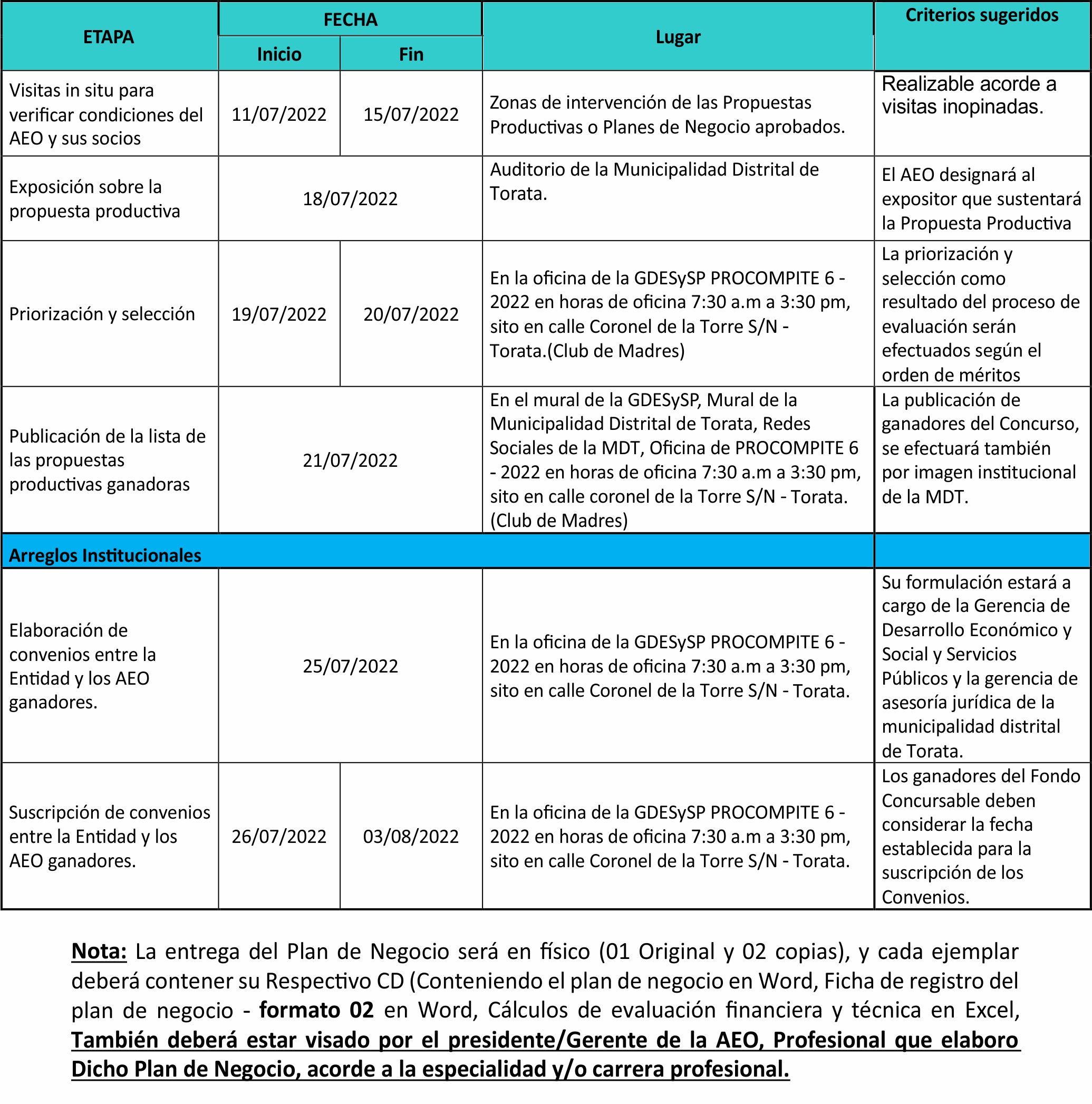 La comisión organizadora, a cargo de la Gerencia de Desarrollo Económico Social, agradece el apoyo con los premios a la empresa Anglo American y a todas las panaderías y pastelerías, así como a emprendedores del Distrito con lo mejor de la gastronomía torateña, así como producción de macerados de damasco, entre otros productos para el deleite de todo el público asistente.