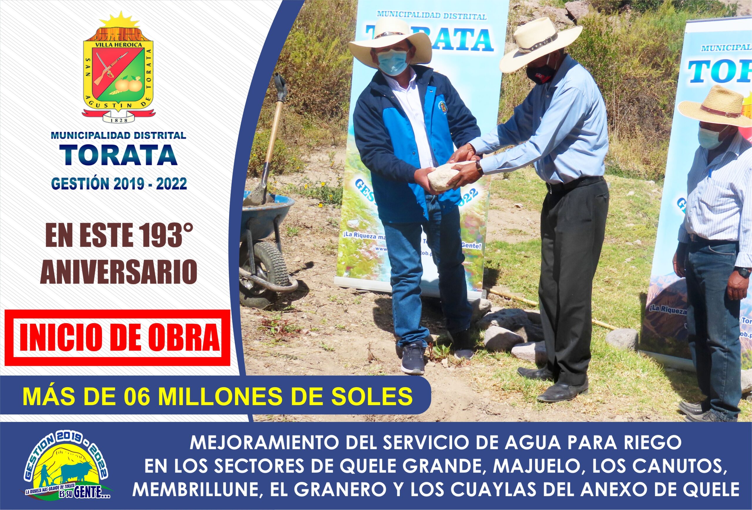 El Alcalde de la Municipalidad de Torata, Bach. Hernán Pedro Juárez Coayla, brindo importantes anuncios referidos al trabajo de su actual gestión municipal en estos 2 años y 5 meses en pro del desarrollo del Distrito.