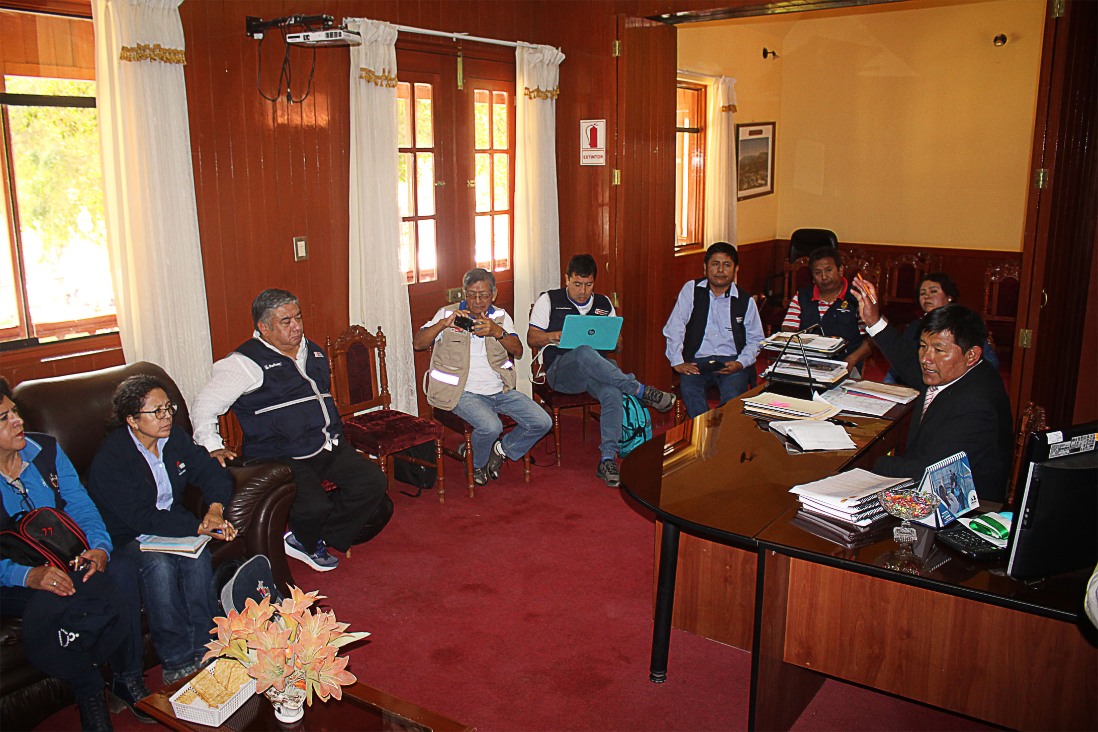 El Alcalde de la Municipalidad Distrital de Torata, Hernán Pedro Juarez Coayla, acompañado del Regidor del Concejo Edil de Torata, Edwin Percy Vasquez Vilca y el Alcalde del Centro Poblado de Yacango, Ruyer Nestor Estoraica Flores, representaron al Distrito de Torata y participaron de la Reunión de Coordinación para abordar la problemática ante el Seguimiento y Cumplimiento de los 26 Acuerdos de la Mesa de Diálogo con la Empresa Minera Anglo American en la Región Moquegua.