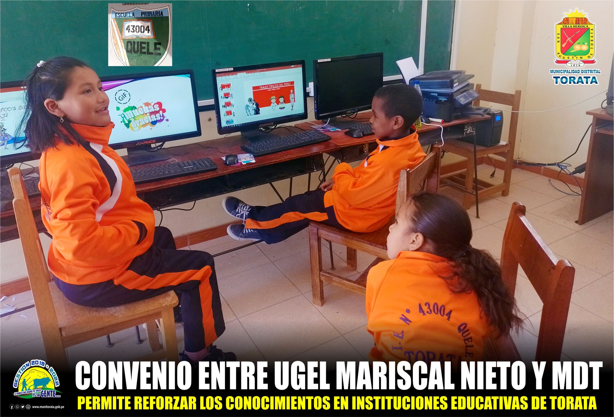 Como parte de un trabajo conjunto a través del Convenio Interinstitucional entre la Municipalidad de Torata y la Unidad de Gestión Educativa Local UGEL-Mariscal Nieto, la Comuna Distrital de Torata viene brindando el apoyo con el reforzamiento estudiantil a través de la contratación de docentes en las materias de reforzamiento matemático, inglés, computación, educación física, educación inicial, entre otros.