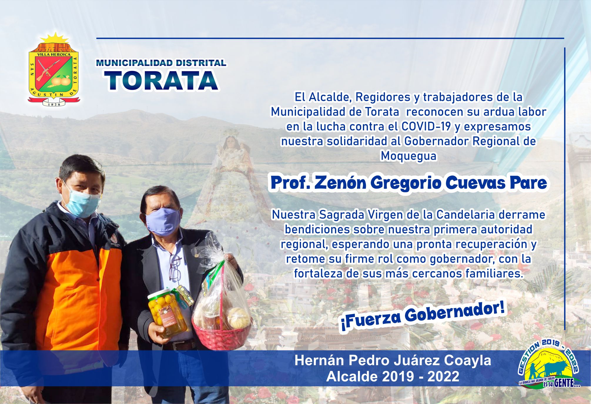 El Alcalde, Regidores y trabajadores de la Municipalidad de Torata reconocen su ardua labor en la lucha contra el COVID-19 y expresamos nuestra solidaridad al Gobernador Regional de Moquegua Prof. Zenón Gregorio Cuevas Pare.