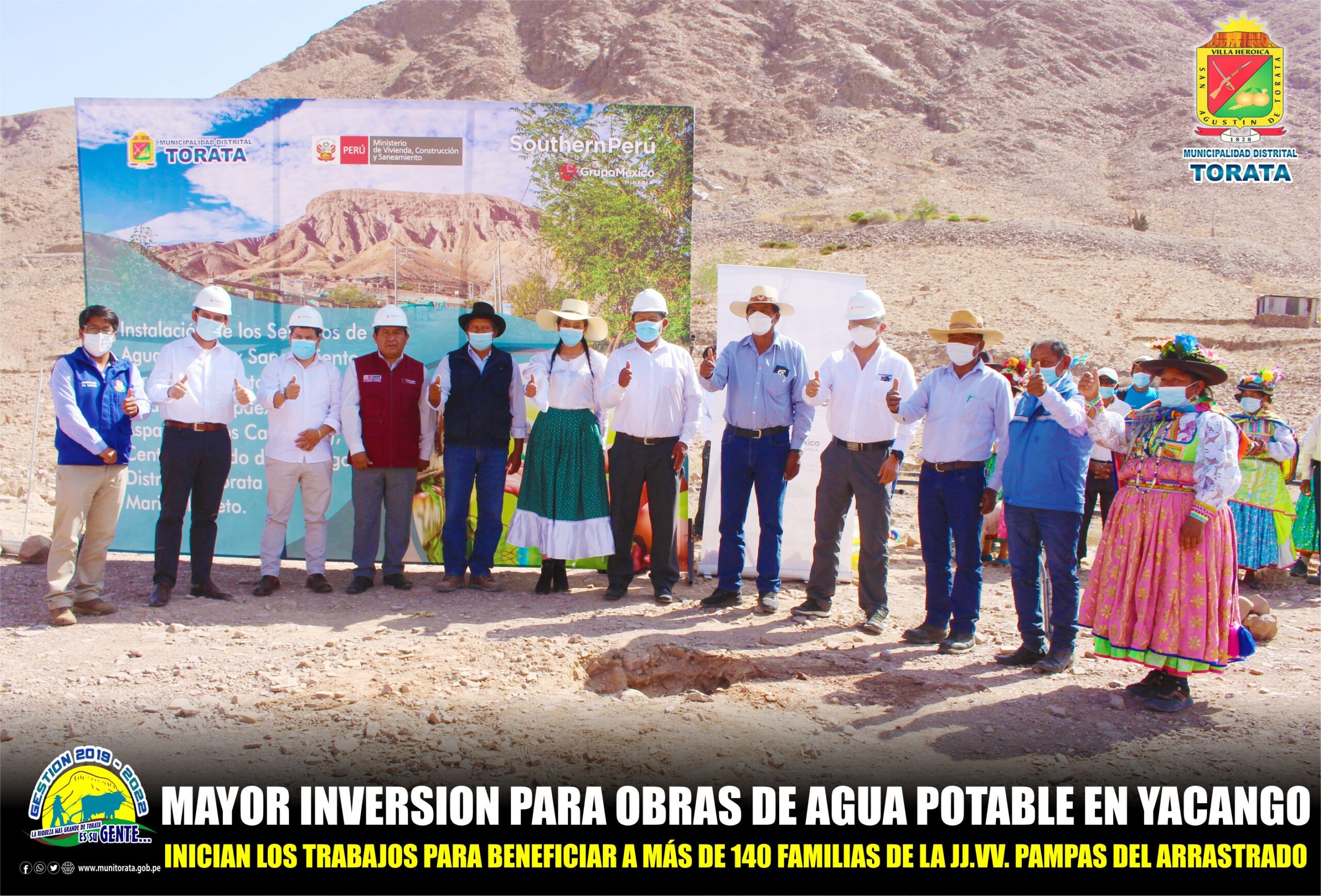 El Alcalde de la Comuna Distrital, Abog. Hernán Juárez Coayla, señalo que, a pesar de la emergencia sanitaria y crisis política a nivel del gobierno central en los años 2020 y 2021, se logró el financiamiento para dicho proyecto, que se suma a una más de las gestiones logradas con financiamiento ante el Ministerio de Vivienda, Construcción y Saneamiento por mas de 8.7 millones de soles y la Empresa Privada Southern Perú a través del mecanismo de inversión de obras por impuestos, pero con asignación al dicha cartera ministerial con el Programa Nacional de Saneamiento Rural.