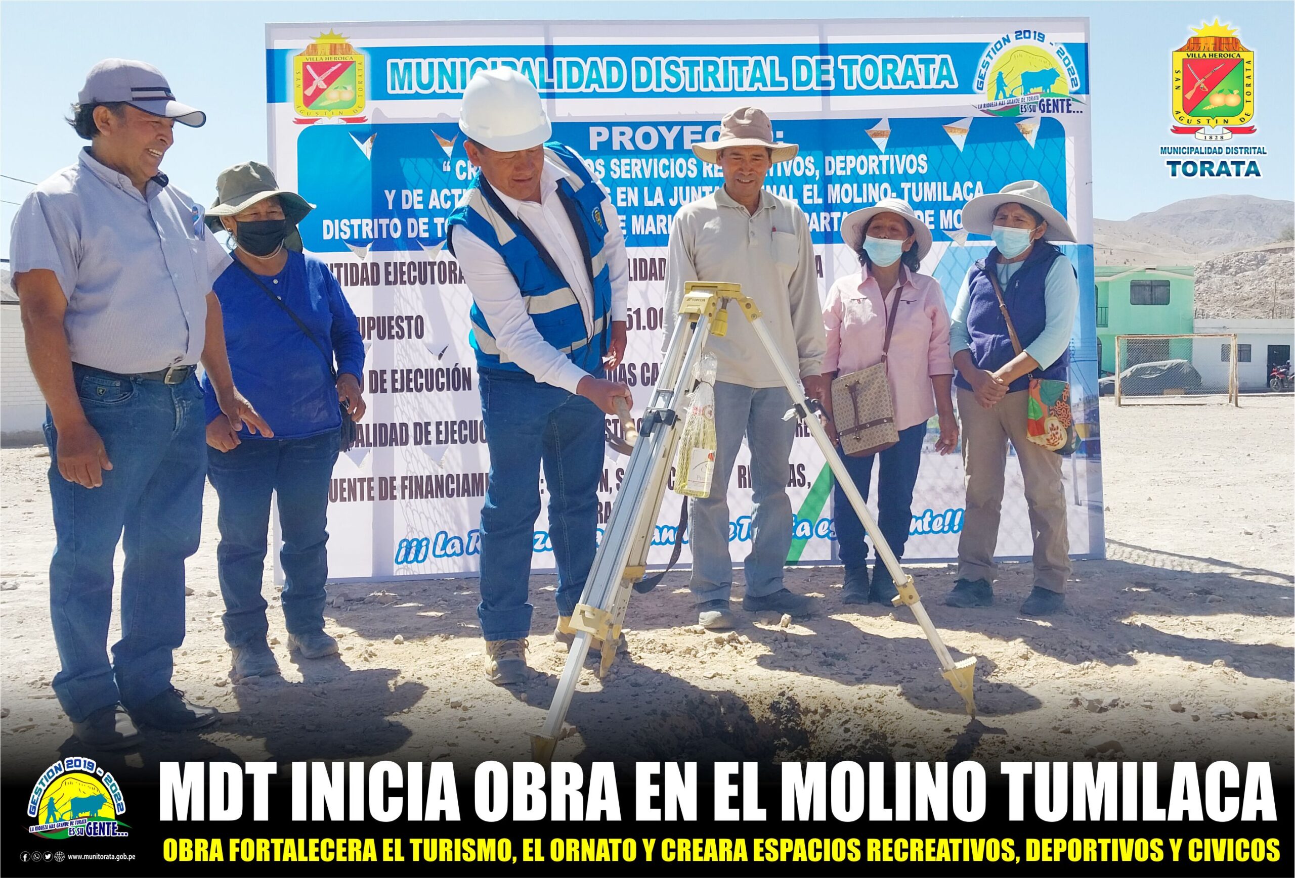 Cumpliendo con un compromiso asumido por la autoridad edil, la Municipalidad Distrital de Torata inicio la ejecución del Proyecto “Creación de los Servicios Recreativos, Deportivos y de Actividades Cívicas en la Junta Vecinal El Molino Tumilaca”, obra que permitirá generar fuentes de trabajo para familias del sector.