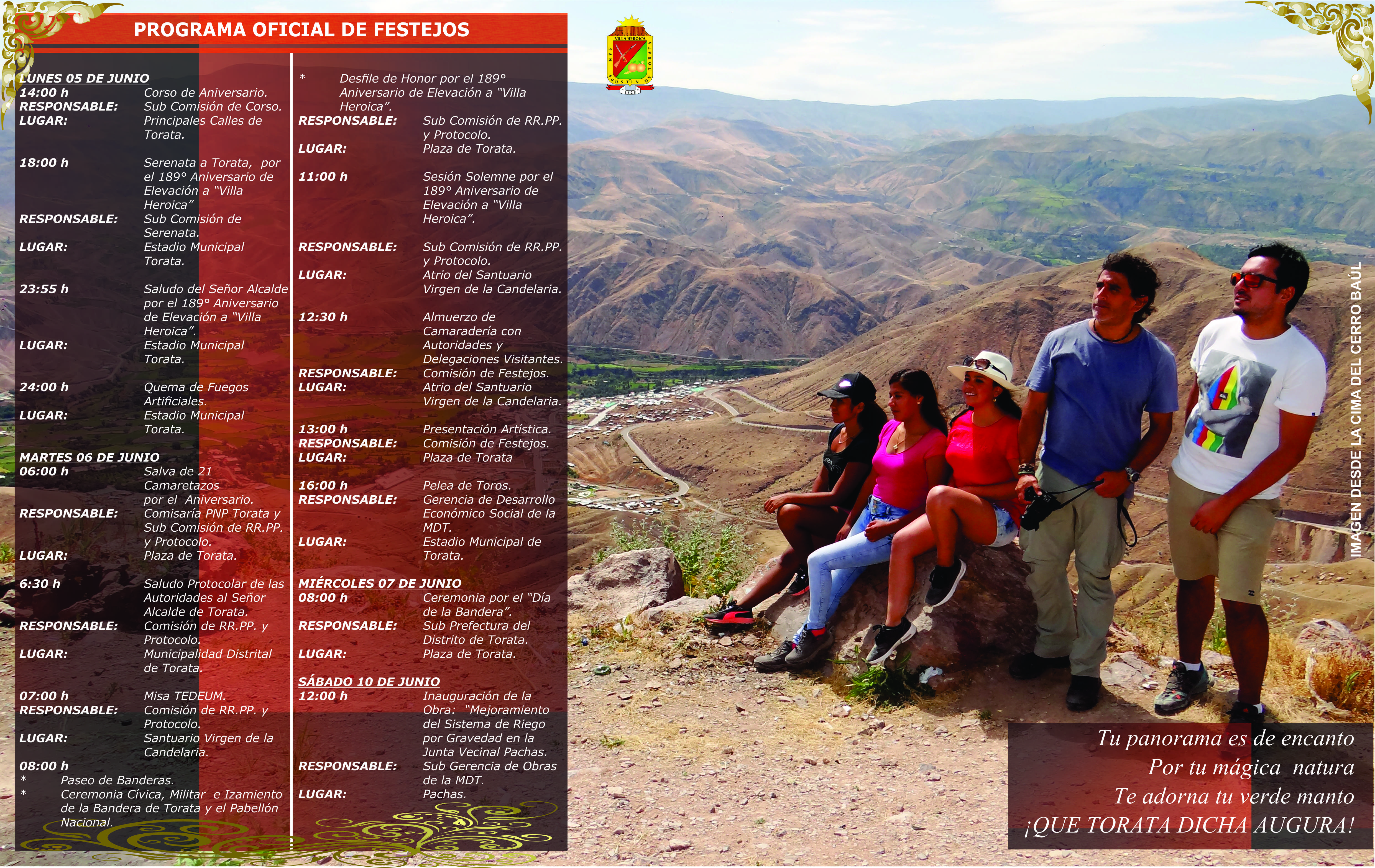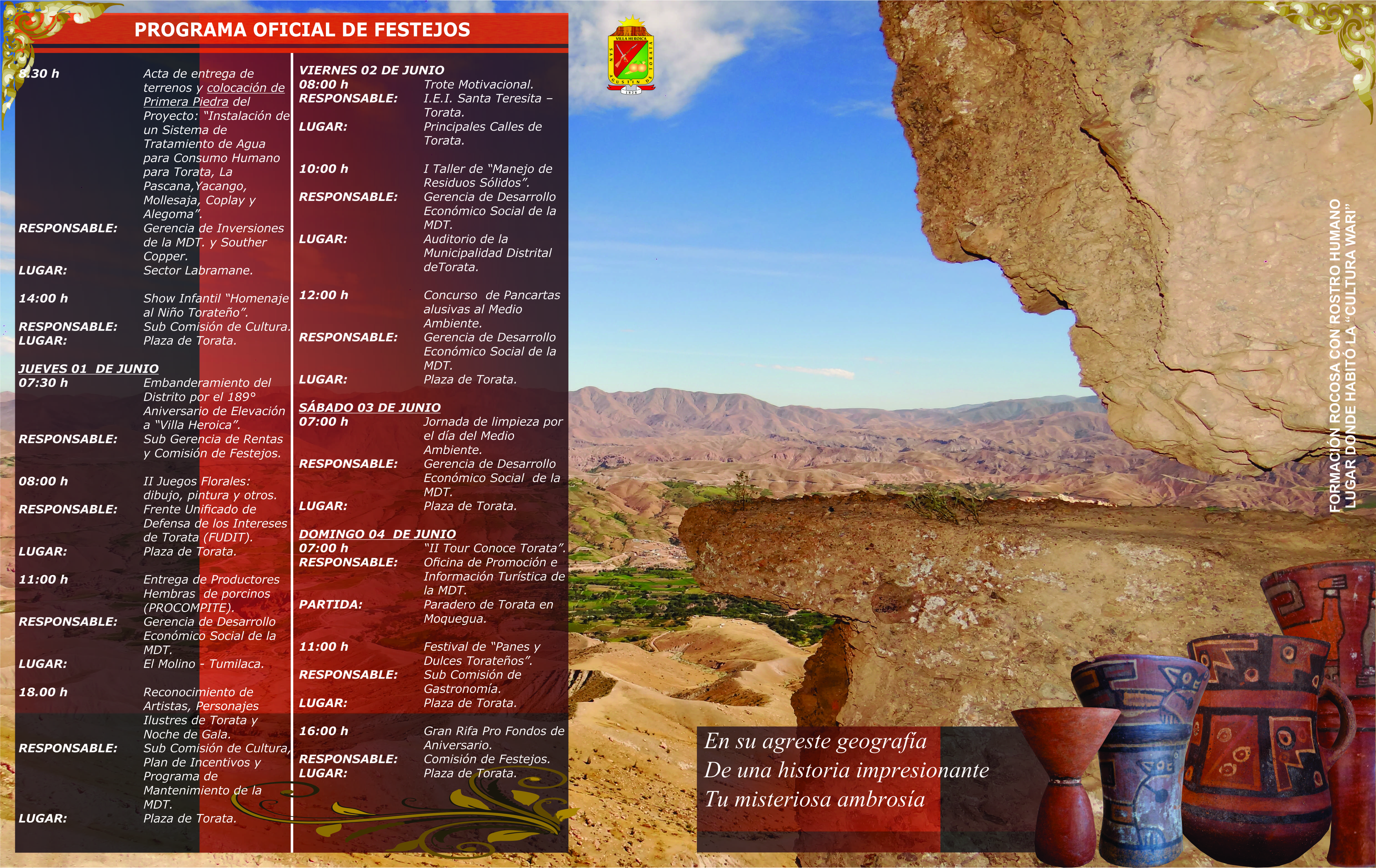 Home Noticias PROGRAMA OFICIAL DE FESTEJOS DEL 189° ANIVERSARIO DE ELEVACIÓN A “VILLA HEROICA” DE TORATA